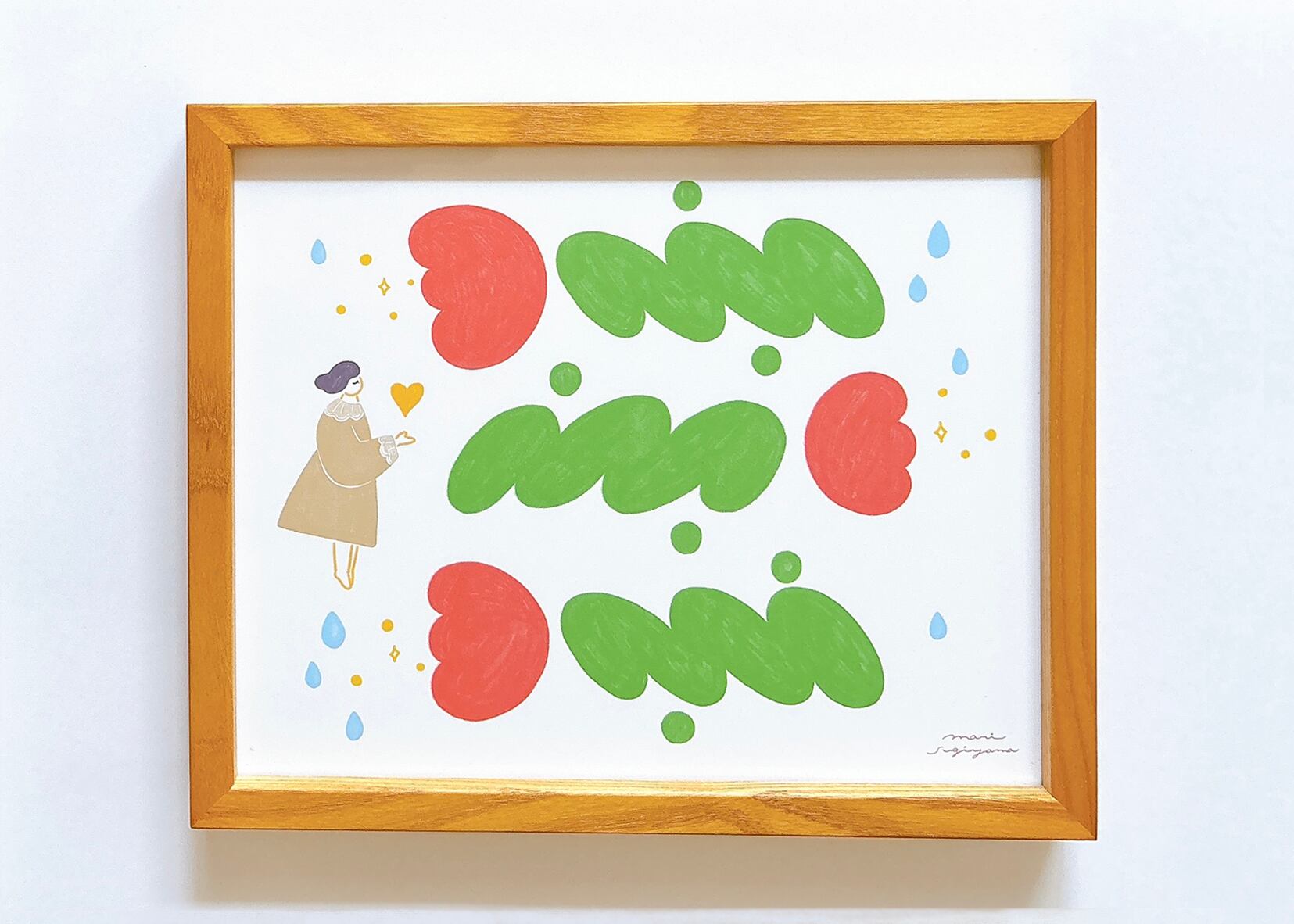 ・デジタル制作した作品を高品質印刷し、木製額に額装しました。